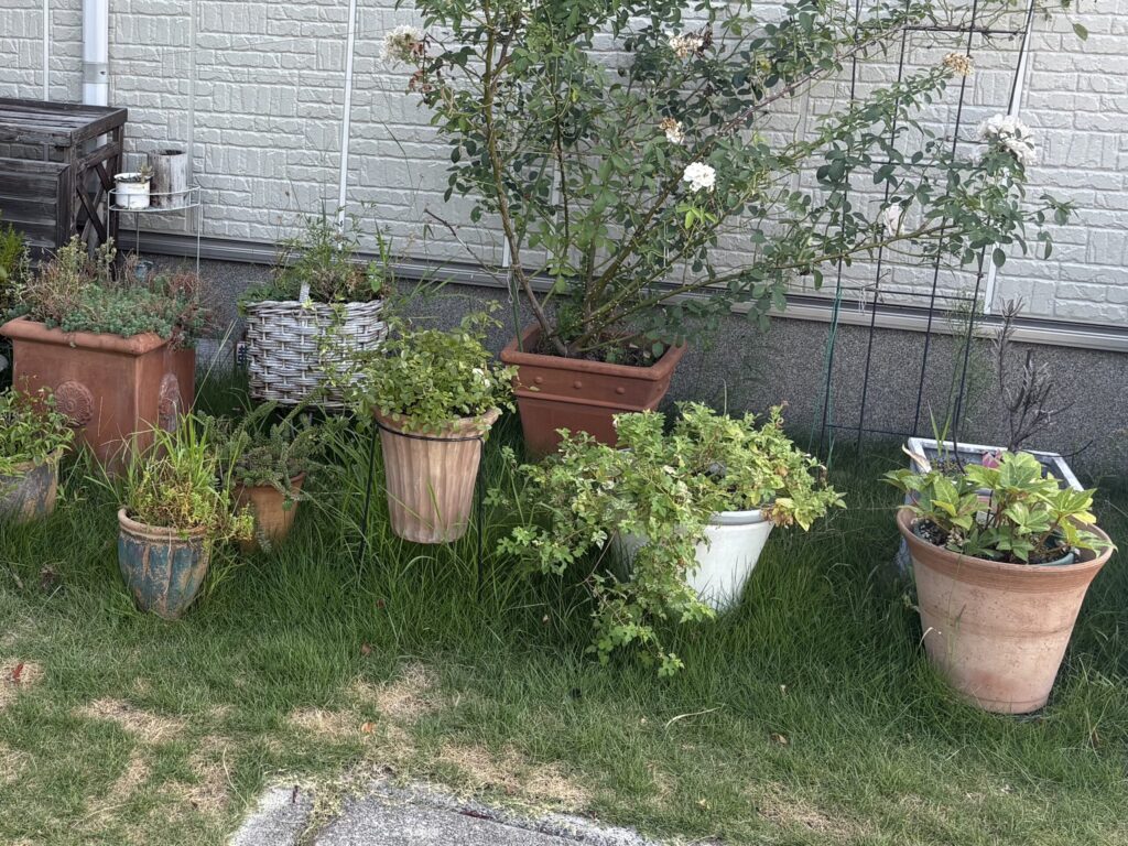 我が家の庭は、私が花を植えるのが好きなので鉢がたくさんあります。